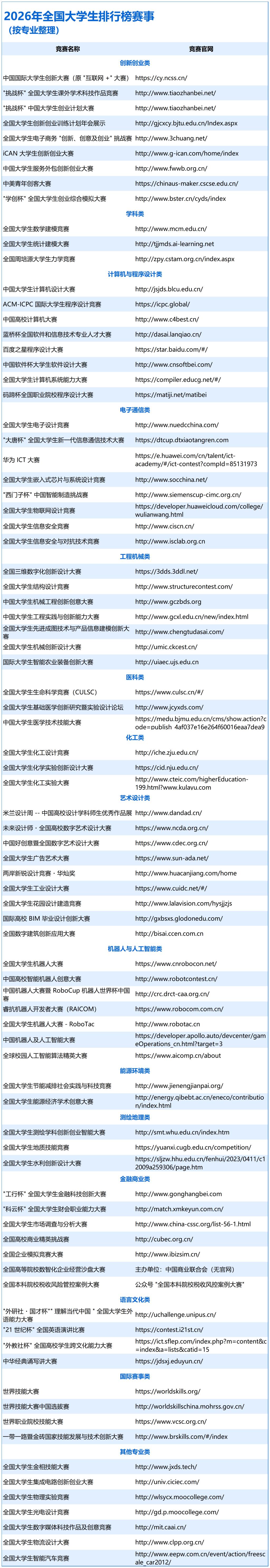 2026年教育部认可全国大学生学科竞赛目录(84项)